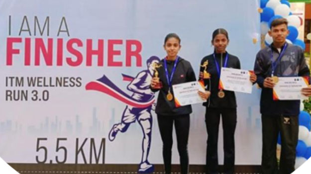 ITM Wellness Marathon 2025: Pillai HOC International students for winning ITM wellness marathon at Khargar on 16th February, 2025. Master Yash Nindekar won 3rd prize in Open Men section, Ms. Devika Sonawane won Gold Medal and First Position Open Women section and Ms. Anushka Gupta won Silver Medal and second prize in open women section.